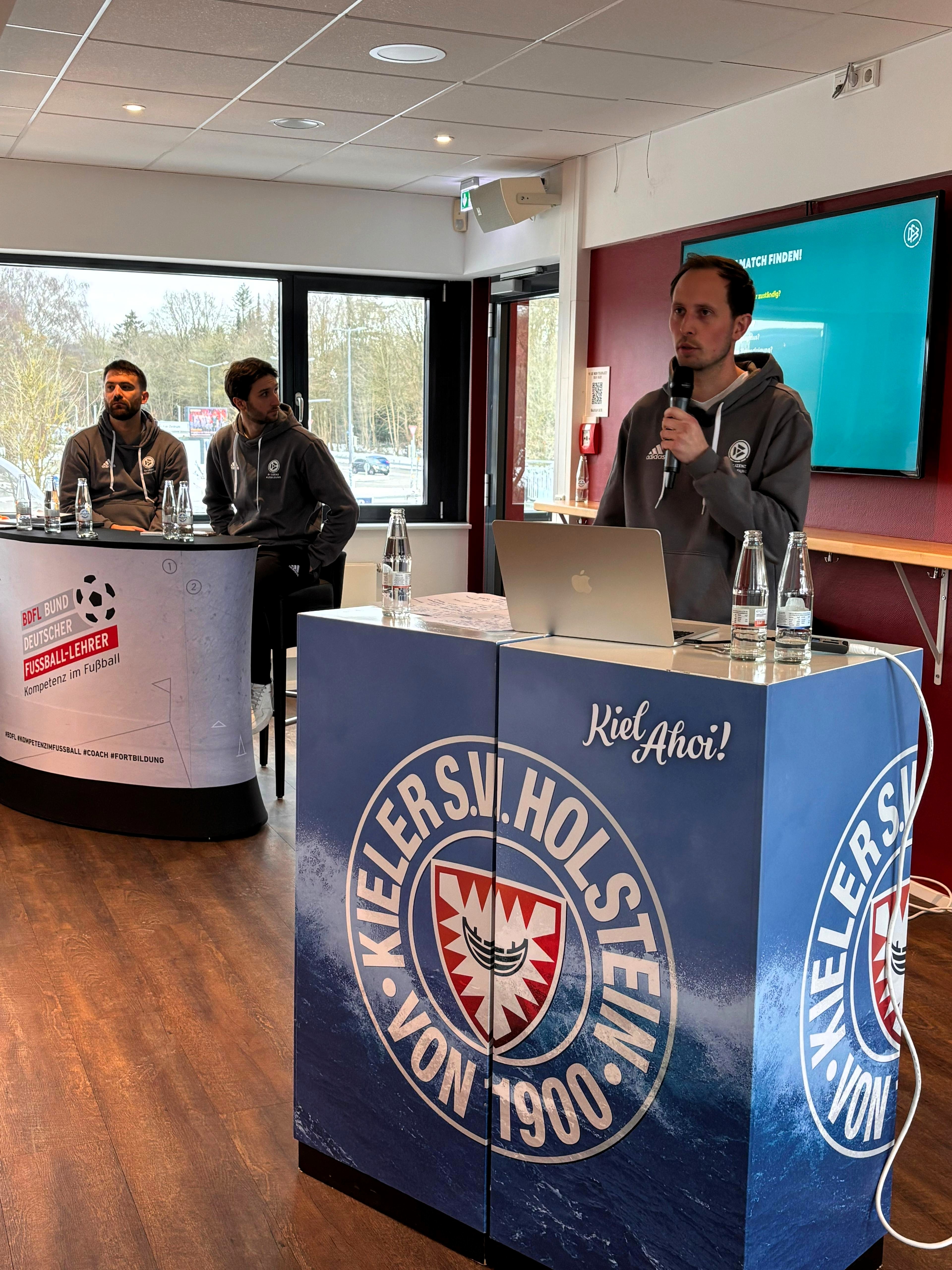 Während in Köln Hendrik Winkelmann (DFB-Stützpunktkoordinator FVM) einen Überblick zum Relativen Alterseffekt in der Talentförderung gab und Benedikt Hammans (Cheftrainer U 14 1. FC Köln) – beide Teilnehmer in der aktuellen A+-Lizenzausbildung – unterstützend mit Aaron Eichhorn (Athletiktrainer 1. FC Köln U14 / U 15) anschließend das Bio-Banding-Konzept des 1. FC Köln vorstellten, wurden in Kiel von Linus Schewior (Co Trainer U23 Holstein Kiel), Max Janta (Co Trainer U23 FC St. Pauli) und Lukas Rösel (Trainer U19 Niendorfer SV) – ebenfalls Teilnehmer in der aktuellen A+-Lizenzausbildung – in mehreren Theorieblöcken die Grundlagen von Individual-, Positions- und individualisiertem Training vermittelt.